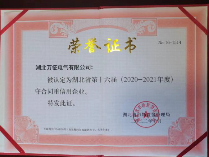 熱烈祝賀萬征電氣喜獲省級、市級“守合同重信用企業”雙榮譽稱號