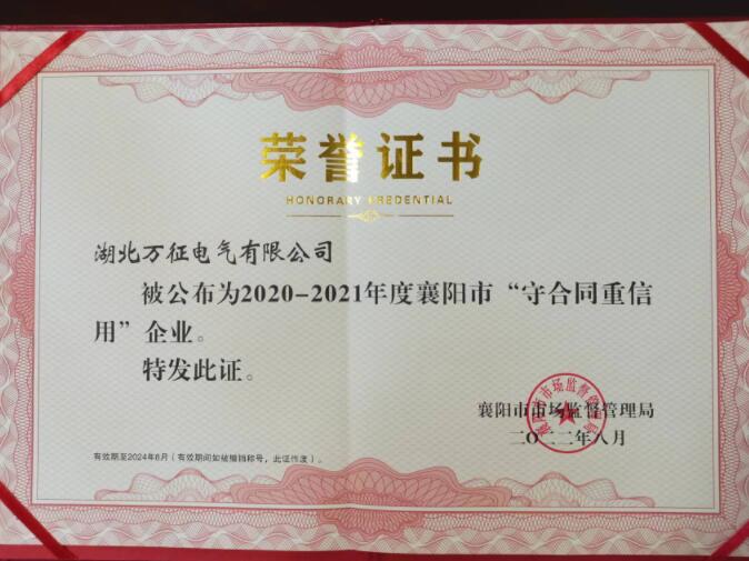 春風春雨花經眼,江北江南水拍天;湖北襄陽有萬征,襄城樊城都是春。陽春三月、草長鶯飛,湖北萬征電氣有限公司也接連喜獲榮譽:省級及市級“守合同重信用企業”,萬征電氣始終將企業信譽視作長盛不衰的生命力!認真對待每一個客戶、每一份合同,堅決做到嚴格按照合同條款執行合同,從不弄虛作假、以次充好!從不延誤貨期、延時服務,認真為每一個客戶做出質量可靠的產品及及時周到的現場服務工作!公司成立六年來,沒有一件合同糾紛及官司!這充分證明了湖北萬征電氣有限公司是真正的“守合同重信用企業”,絕不是浪得虛名!我們始終踐行“信念堪比長征、信譽鑄就萬征”的企業精神,力爭把萬征電氣各項工作及經營業績更上一層樓!